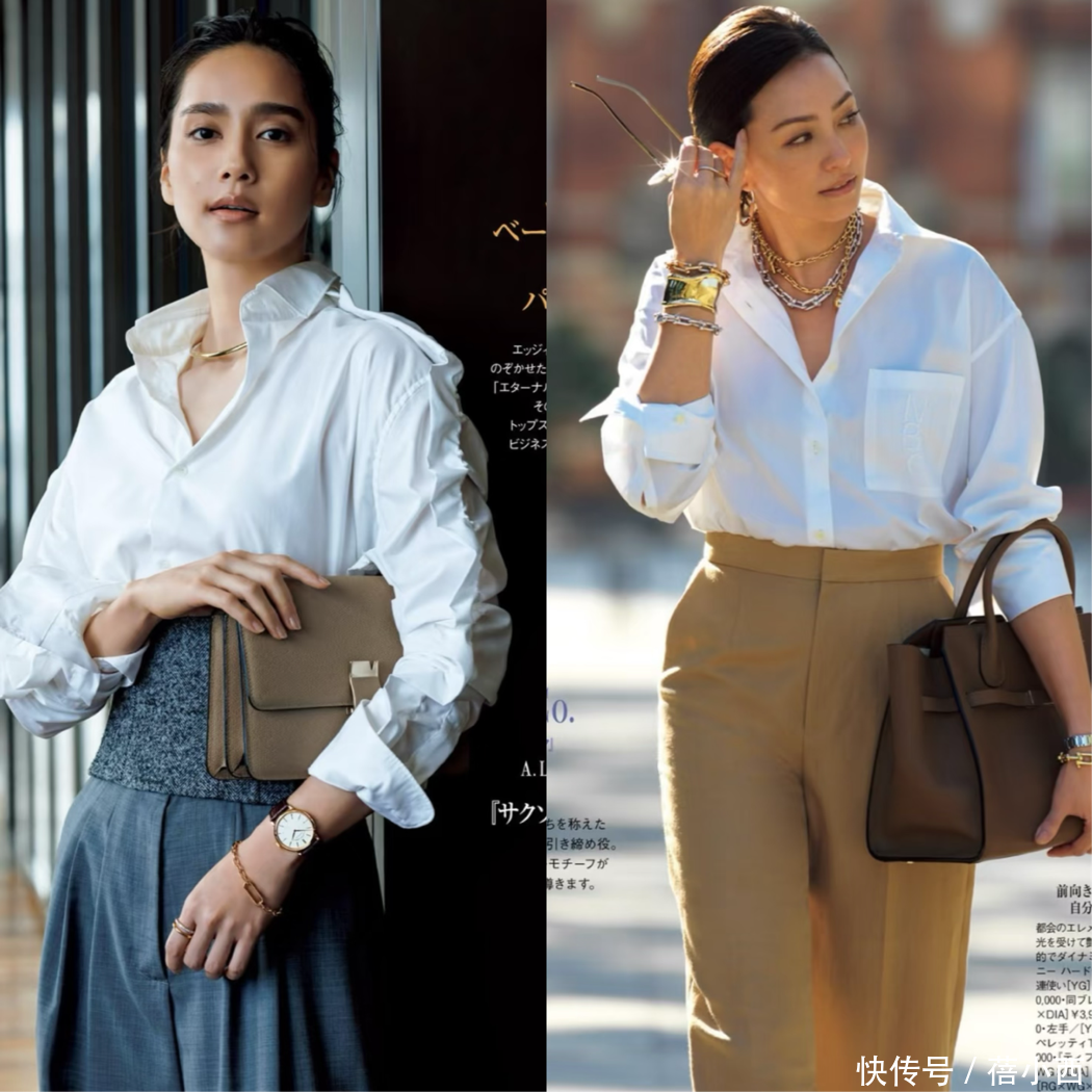 她们擅长用“上松下紧”或“上紧下松”的版型平衡法修饰身材,即便是穿纯色的白衬衫,也不会显得单调无趣,反而能纵向拉伸比例,显瘦又增高。